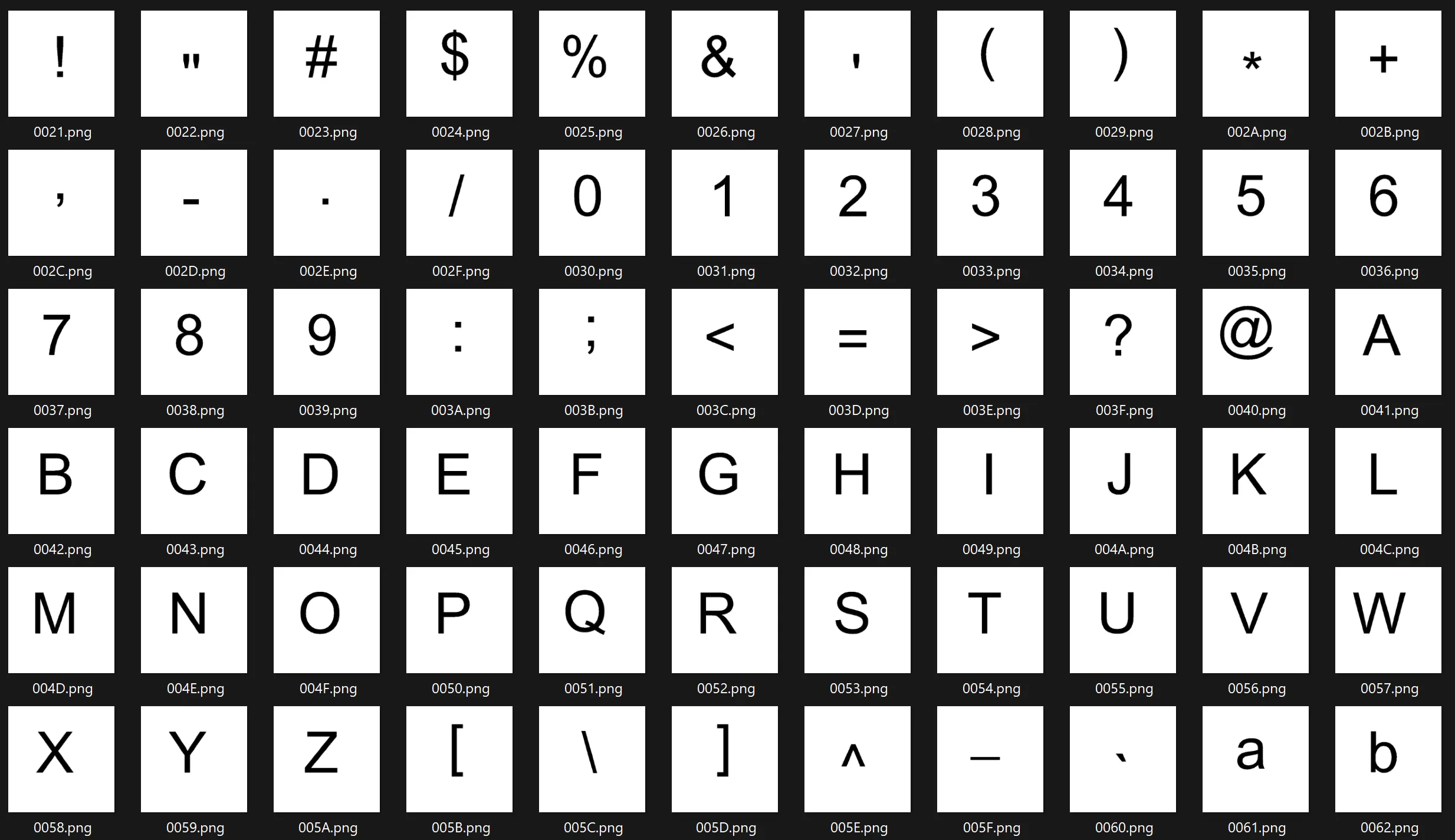 To train the model, I created 128*128 pixel PNGs of all the characters.